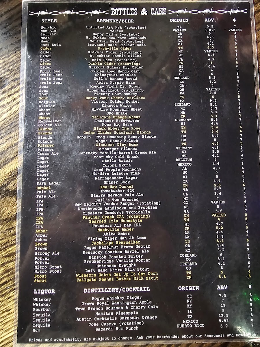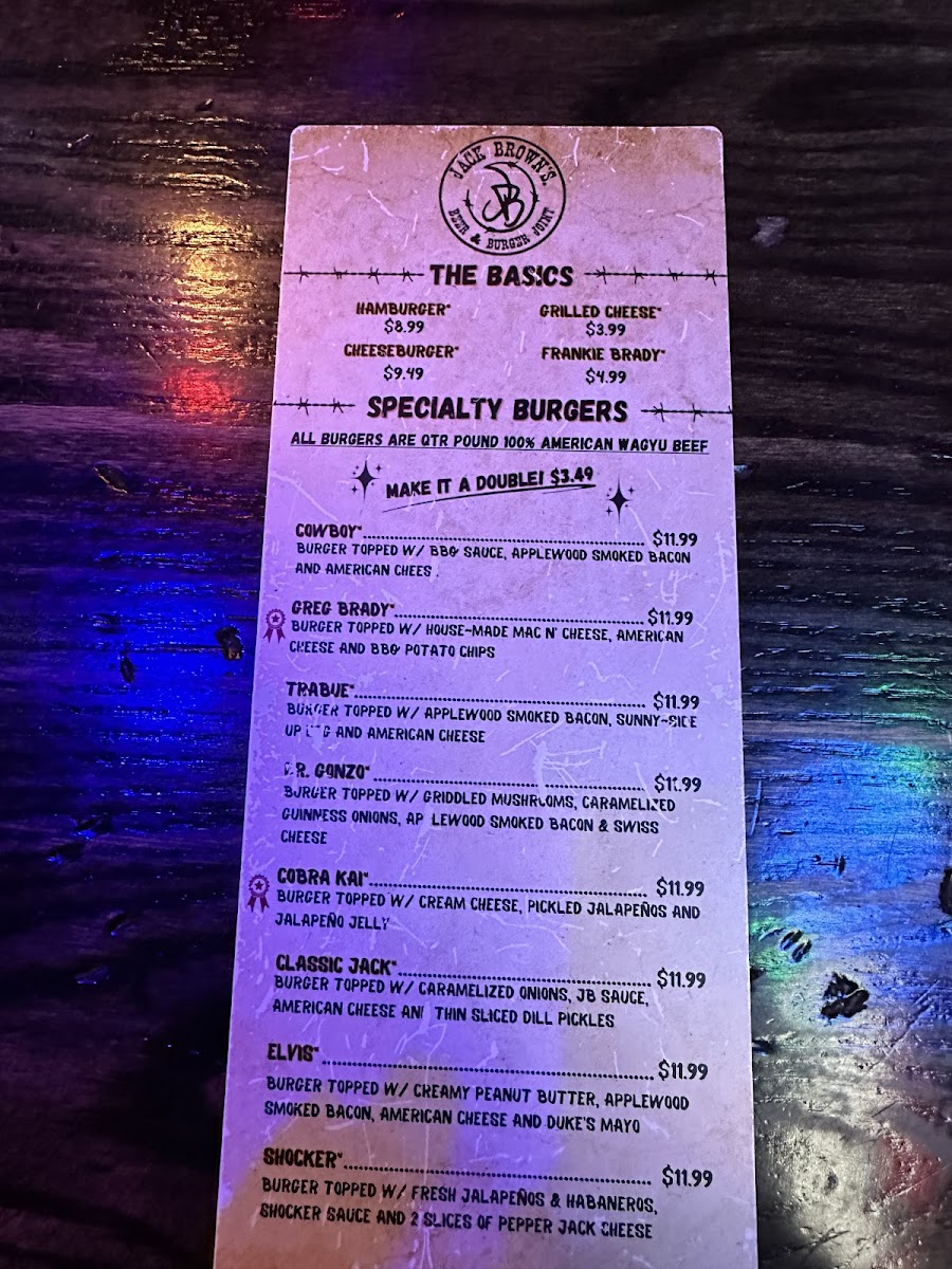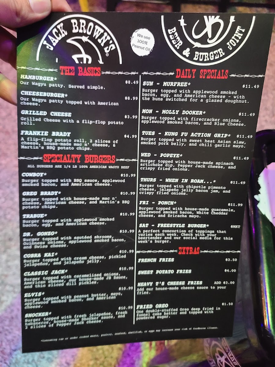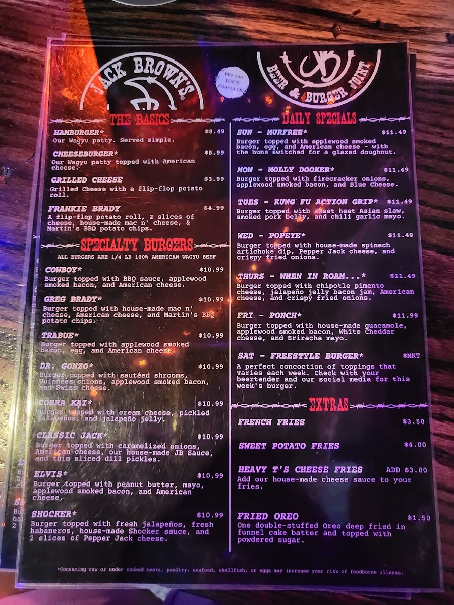 Jack Brown's Beer & Burger Joint Murfreesboro Menu